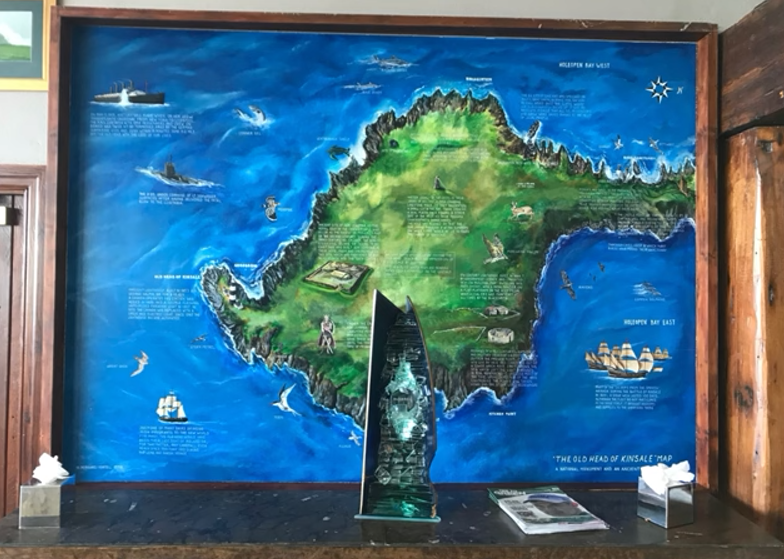 A reminder in the top-left of the this Old Head clubhouse painting of the event that took place on May 7th, 1915.