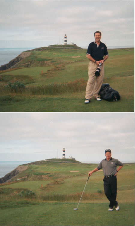 Norman Dabell atop and Bernie on the 4th tee at Old Head
