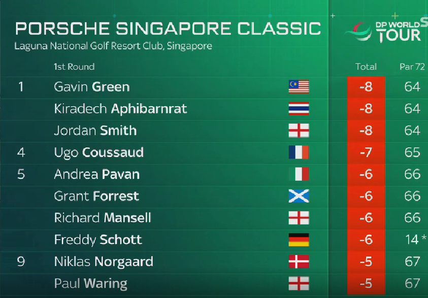 The trio of legendary Thai golfer Kiradech Aphirbarnat, England’s Jordan Smith and Malayian Gavin Green lead the way with eight-under 64s in hot but windy conditions on the host Laguna National course in the golf-laden island nation.