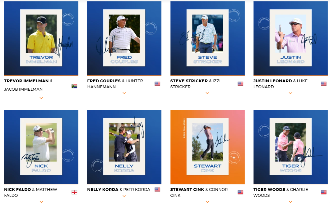 And the 2008 Masters champ Trevor Immelman will partner with his 18-year-old son Jacob Immelman.