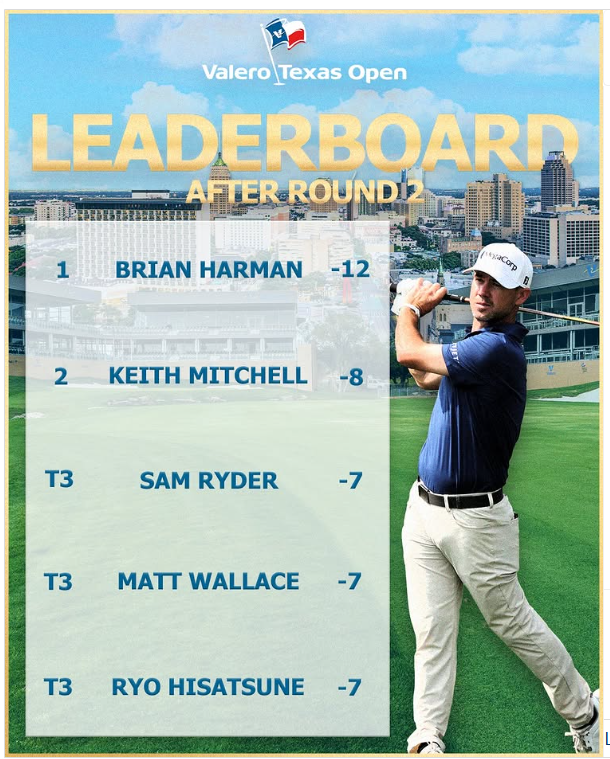 Brian Harman takes Route 66 for a second day to lead the 2025 Valero Texas Open by four shots. Image @ValeroTexasOpen