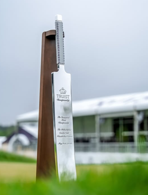 And what a new trophy awaits the winner of the Truist Championship – a silver cricket bat.