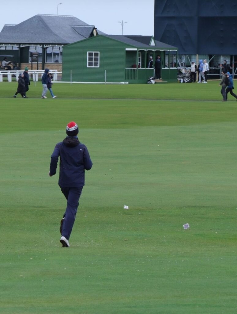 There was the hilarious sight just ahead of Zeta-Jones of the caddy to amateur Hicky Bacon running off the 18th tee to the Swilcan Burn chasing bank notes that had blown out of the wallet of Bacon the caddy had dropped on the tee fact, one of the bank notes found the famed body of water (laughing).
