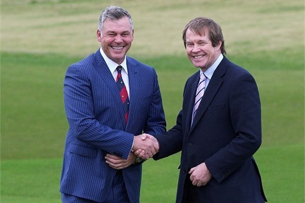 Open Champion, Darren Clarke meets with European Tour CEO, George O'Grady at Royal Portrush when it was announced the 2012 Irish Open was headed to the Co. Antrim course. (Photo - European Tour).