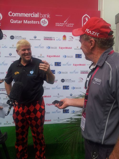 John Daly shares a laugh with Bernie after his opening round in the 2012 Commercial Bank Qatar Masters. (Photo - www.golfbytourmiss.com)