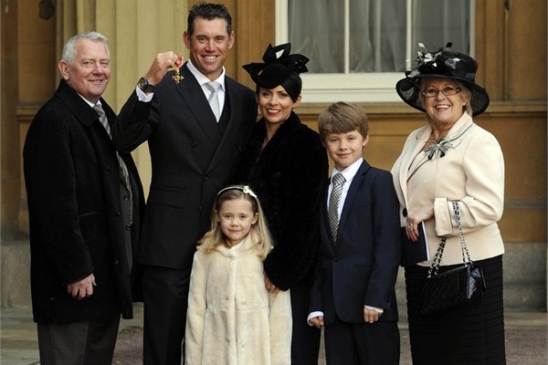 Lee Westwood along with wife, children and his parents at the presentation of his OBE at Buckingham Palace. (Photo - European Tour)
