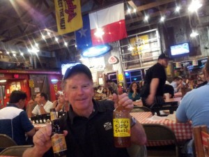 Bernie with a Shiner and a bottle Rudy’s special Sissy sauce