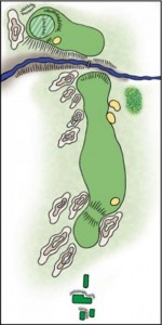 Map of the 6th hole (Dolly’s Hole) where you have to place your tee shot between two large mounds.