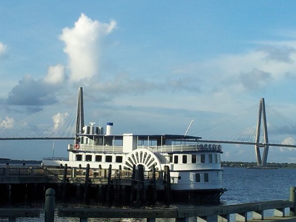 Paddle Wheel steamer at anchor in Charleston Harbour