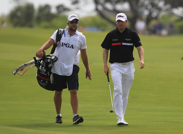 Michael Hoey on the 7th hole on day two of the 2012 PGA Championship but sadly just moments away from being disqualified from his first PGA. (Exclusive photo - Eoin Clarke/www.golffile.ie)