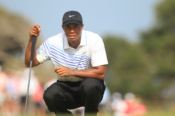 Tiger Wood lining up a putt during Saturday's third round. (Photo - Eoin Clarke/www.golffile.ie)