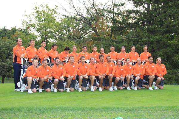 The European Team and their respective caddies line up at Medinah. (Photo – Eoin Clarke/www.golffile.ie)