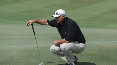 The 46-year old triple European Tour winner posted eight birdies, offset only by bogeys at the eighth and 18th holes, on route a new low on the Gary Player designed course.
