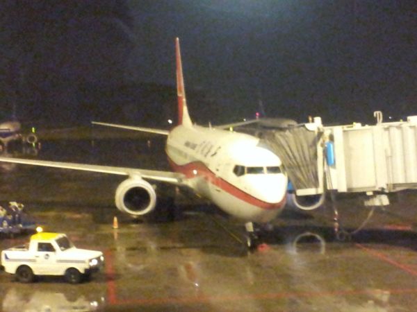 Shanghai Airlines plane through rain affected windows