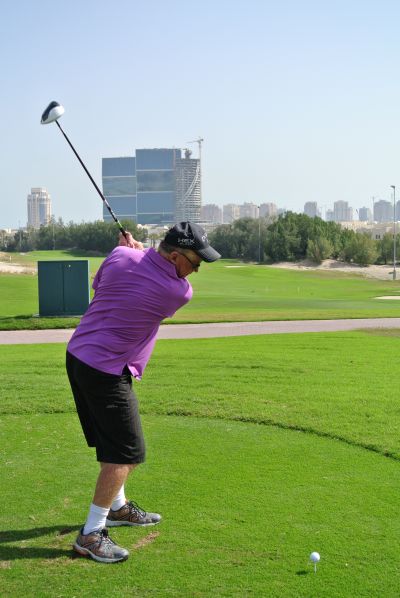 Highly-respected Australian-born scribe, Bernie McGuire celebrated Australia Day (January 26th) with a booming victory drive down the last hole in a ‘winner takes all’ encounter against leading European Tour photographer, Eoin Clarke.
