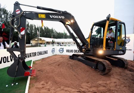 Louis Oosthuizen right at home behind the controls of his Volvo excavator. (Photo – www.europeantour.com/Getty Images).