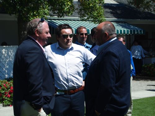 Conor Ridge (centre) speaking with ISM’s Chubby Chandler (right). (Photo – www.golfbytourmiss.com)
