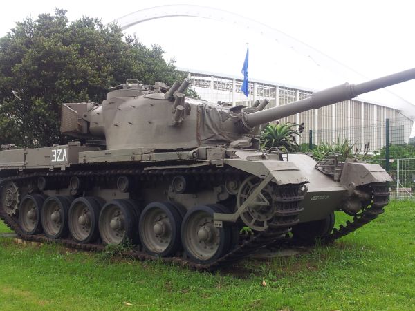 Tank with Durban Football stadium in background