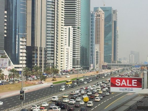 The SALE sign clearly greeting motorists stuck in a traffic jam on Sheik Zahed Road.