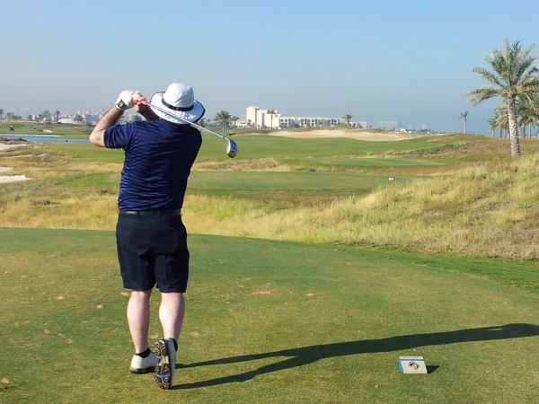 Stuart Adams drives off Par 5 15th hole – ‘Double Trouble’.