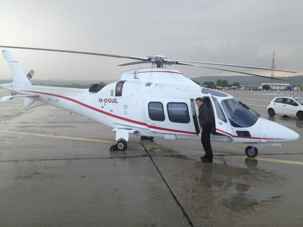 One of two helicopters that met 11 PGA Tour based players at Varna Airport for a flyover of the stunning Thracian Cliffs course. (Photo - Volvo Golf)
