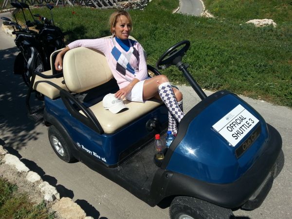 Tour Miss Behind The Wheel Of Golf Buggy At Thracian Cliffs.