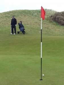 Top European Tour photographer, Stuart Adams goes close to holing this shot at the par five, 16th hole.