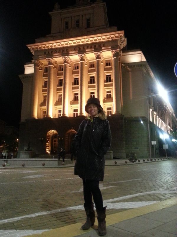 Tour Miss in front of Ministry of Interior Building in Sofia