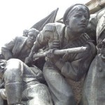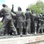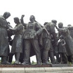 The monument was constructed in 1954 and features a Russian soldier flanked by a woman and a man from Bulgaria.