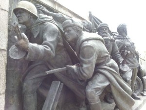 Soviet Monument – Bronze plaque depicting soldiers in winter campaign
