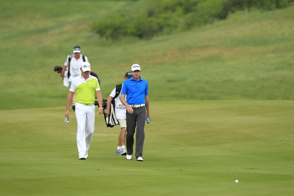 Australia’s Brett Rumford out front and on route to defeating Welshman Jamie Donaldson. (Photo – Eoin Clarke/www.golffile.ie)