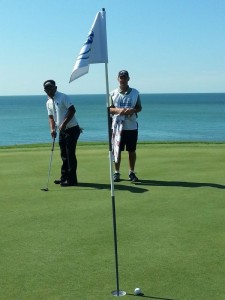 Thongchai just misses his birdie putt on the third hole at Thracian Cliffs.