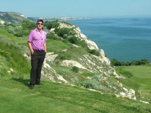 Bernie on the tee at the stunning par three, eighth hole at Thracian Cliffs.