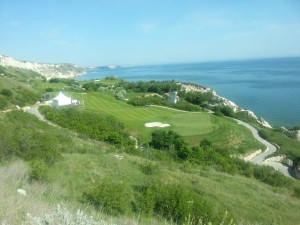 Looking down on the 14th green.