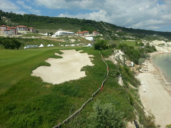 The 4th hole with the Black Sea shoreline some 40 metres below At Thracian Cliffs.