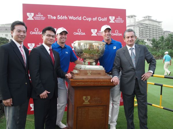 Mission Hill’s Chu brother with victorious Americans Gary Woodland and Matt Kuchar along with Omega’s Stephen Urqhardt at the 2011 World Cup of Golf. (Photo – www.golfbytourmiss.com)