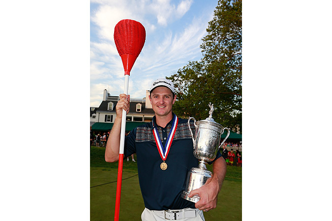 Justin Rose with the gleaming US Open trophy and one of Merion’s wicker flagsticks (Photo -www.usga.org)