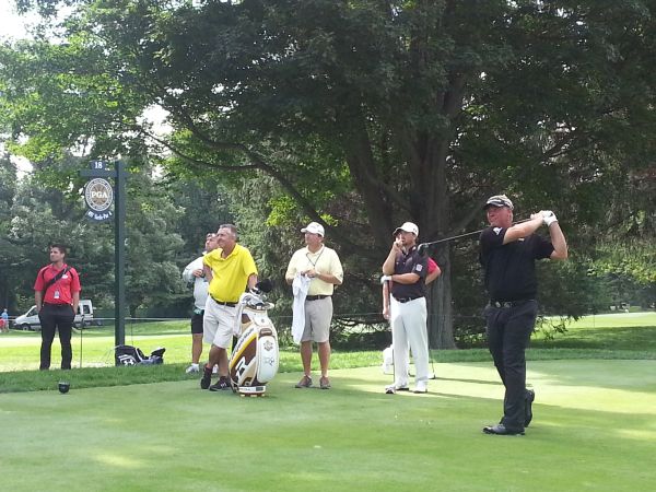 Darren Clarke tees off teh 18th in practice. (Photo – www.golfbytourmiss.com)