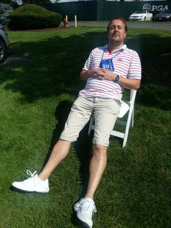 The Telegraphs chief golf writer, Jamie Corrigan and his $10 shoes enjoying the Oak Hill sunshine (Photo – www.golfbytourmiss.com).