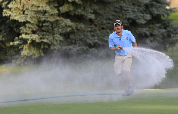 Oak Hill ground staff looking to keep the greens from drying out.