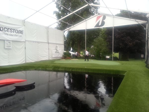 Bridgestone, as sponsors of this week’s WGC – Bridgestone Invitational, built an indoor replica of Firestone’s famed 16th hole.