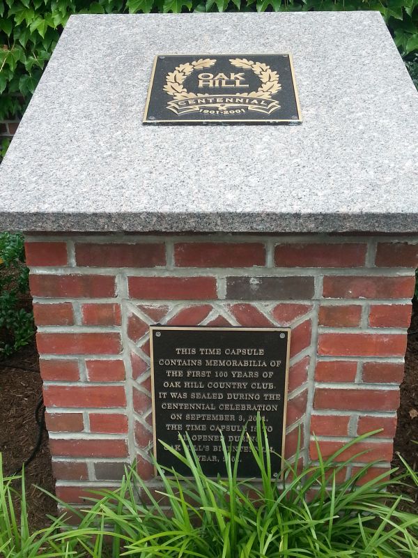 A time capsule set aside in 2001 by the Oak Hill club and to be opened in 2101.
