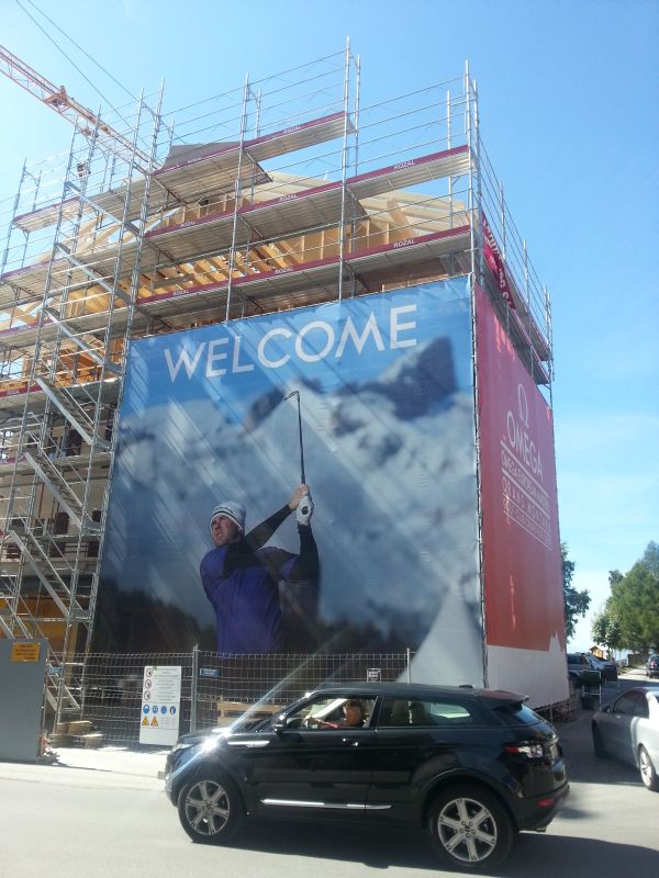 Twenty-five high poster of Richie Ramsay on a construction site in the main street of Crans Montana. (Photo – www.golfbytourmiss.com)