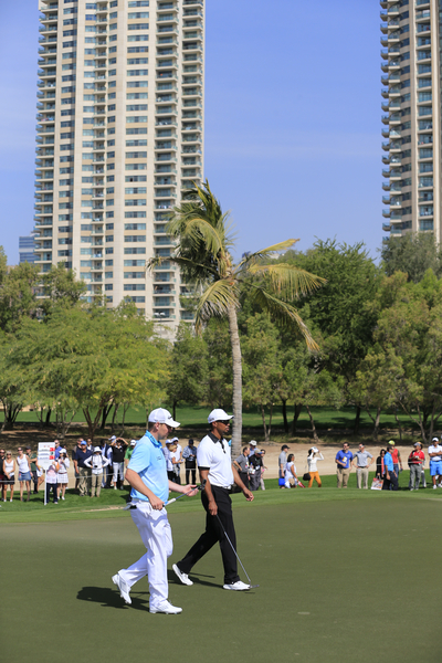 Stephen Gallacher and Tiger Woods side-by-side for three out of four days in Dubai. (Photo – Eoin Clarke/www.golffile.ie)