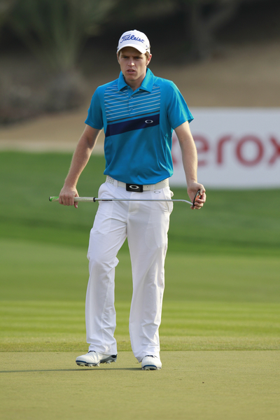 Kevin Phelan sporting ‘borrowed’ attire during the first round of the Abu Dhabi HSBC Championship. (Photo – Eoin Clarke/www.golffile.ie)