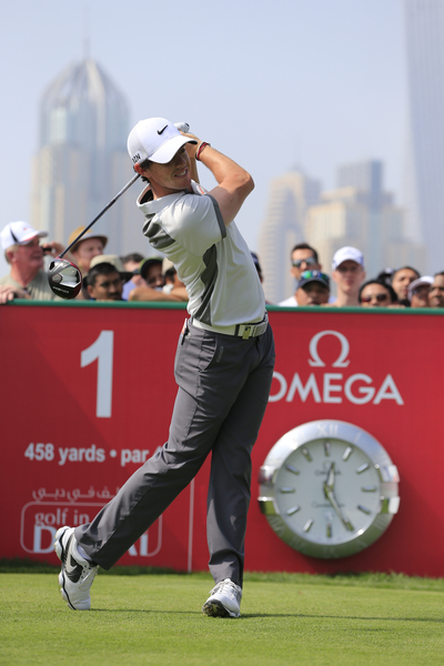 Rory McIlroy (NIR) tees off the 1st tee to start his match during Friday’s Round 2 of the Omega Dubai Desert Classic 2014 held at the Emirates Golf Club, Dubai. 31st January 2014.