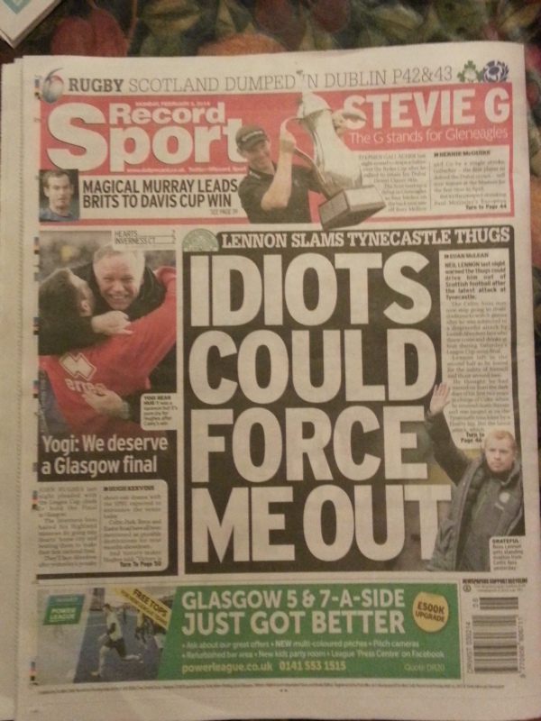 Then on his arrival back to Glasgow Airport Gallacher found his photo on the back pages of the majority of Scotland’s leading newspapers including The Daily Record and The Herald, and the papers Bernie contributes.