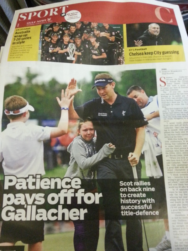 Stephen Gallacher’s double Dubai Desert Classic success captured both front and page news in Dubai and at home in Scotland.