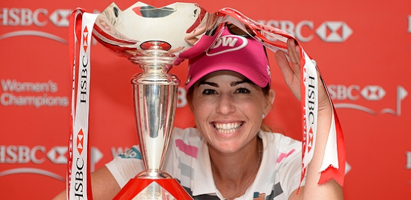 Paula Creamer ends a near 4-year winless drought with a remarkable 75-foot eagle putt. (Photo – www.hsbcchampions)