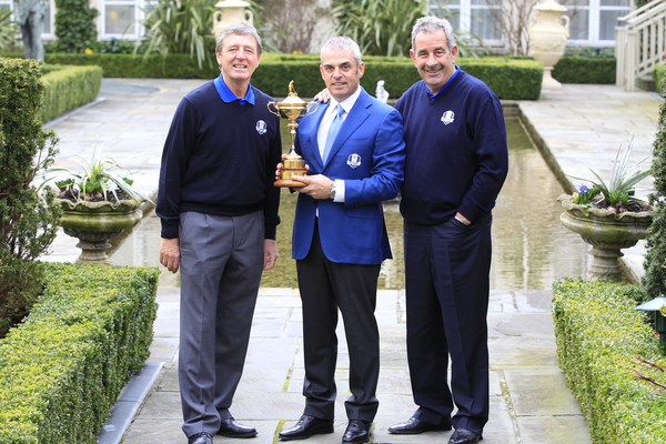 Paul McGinley and his two Gleneagles vice-captains in Des Smyth and Sam Torrance. (Photo – Eoin Clarke/www.golfile.ie)